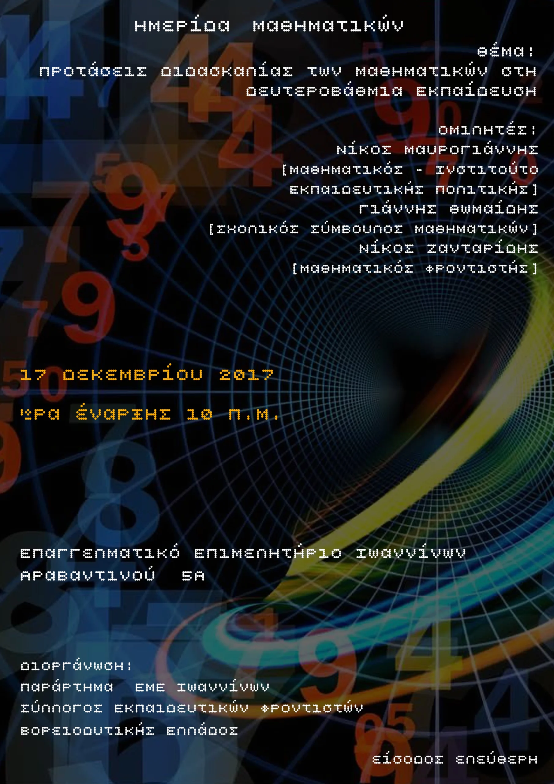 Ημερίδα: Προτάσεις διδασκαλίας των Μαθηματικών στη Β’/θμια Εκπαίδευση